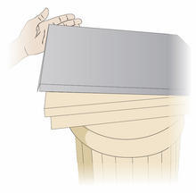Placera sedan pelaren på sockeln. Vid montering av hel betongsockel är det viktigt att den bara skjuts på plats. Om man slår på den bildas det sprickor i sockelns yta och det kan med tiden leda till att sockeln vittrar sönder.