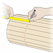 Mät till rätt längd på varje stav runt pelaren innan den kapas med en fintandad fogsvans.
